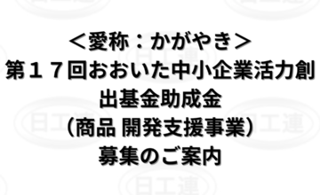 【募集:助成金】<愛称:かがやき>第17回おおいた中小企業活力創出基金助成金(商品開発支援事業)募集のご案内【受付期間】 …